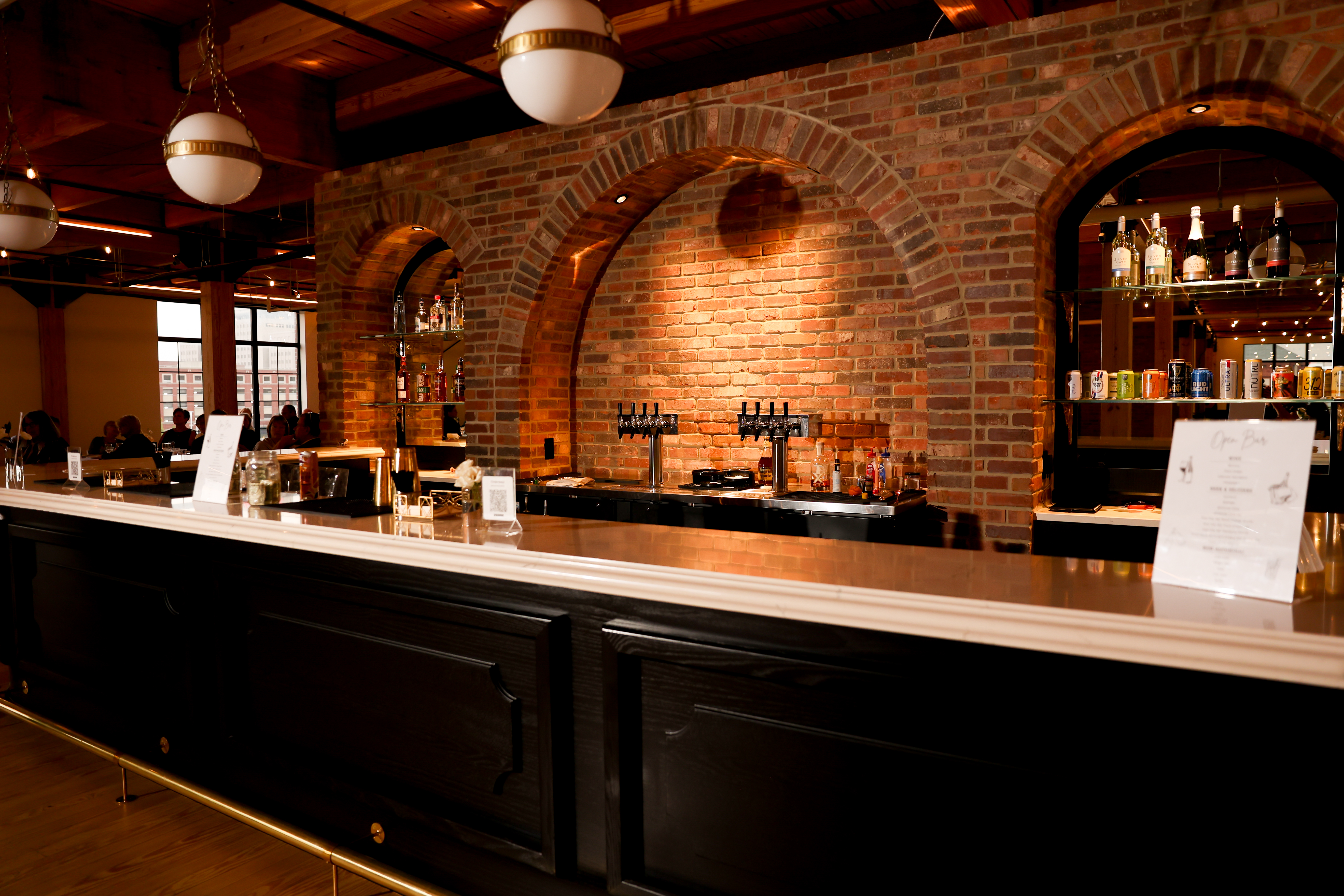 Our full-service bar sits at the center of the venue, creating a natural gathering place for your guests throughout the evening. From craft cocktails and beers on tap to premium spirits and custom drink menus, our bar service can be tailored to match the style of your wedding. With professional bartenders and a beautiful, social atmosphere, it’s the perfect place for guests to relax, connect, and raise a glass to your big day.